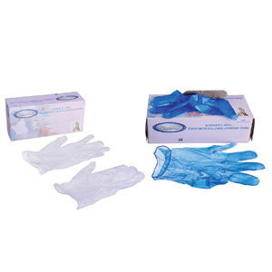 "DIAMOND" VINYL POWDER FREE EXAMINATION HAND GLOVES COLOUR: CLEAR / BLUE SIZES: SMALL, MEDIUM & LARGE LENGTH: 230 MM AMBIDEXTROUS & NON STERILE